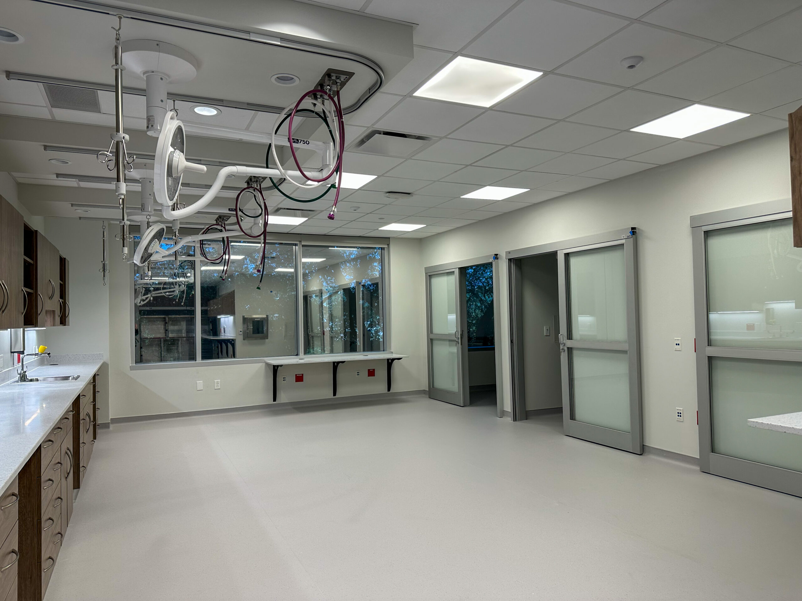 The Austin Veterinary Emergency & Specialty Center is a 48,000-square-foot, two-story advanced veterinary specialty hospital featuring some of the most sophisticated medical infrastructure in Texas. This adaptive reuse project transformed an aging commercial shell into a state-of-the-art facility housing emergency care, surgery, radiology, neurology, and interventional procedures with electrical demands comparable to human healthcare facilities. The project’s complexity included a two-story Linac bunker with specialized radiation shielding, advanced imaging equipment integration, and highly coordinated operating rooms. Through aggressive BIM coordination, prefabrication strategies, and precision Trimble layout, Prism Electric delivered millimeter-accurate installations in extremely congested spaces while meeting a firm occupancy deadline. The LEED-certified facility features programmable wayfinding lighting, custom architectural elements, and 24/7 emergency power systems.