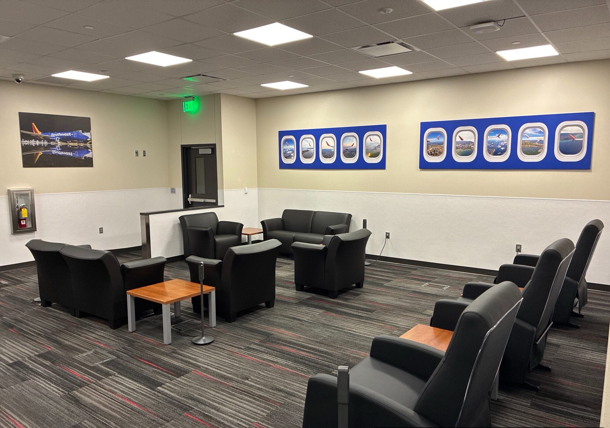 Prism Electric completed a full interior renovation of a 6,645-square-foot mezzanine-level command center and office suite for Southwest Airlines, designed to support pilot operations and administrative functions.